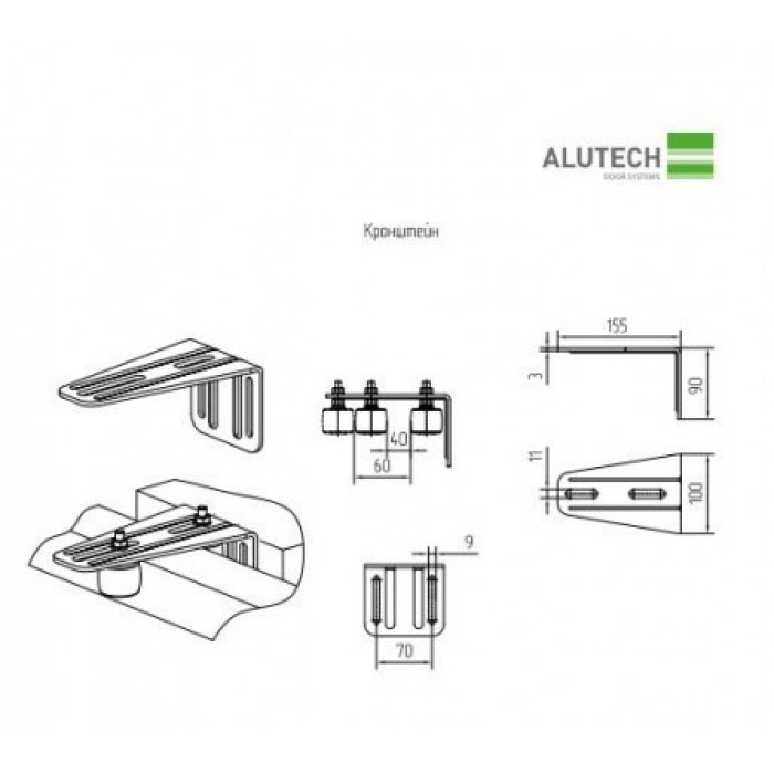 Фиксирование и направление створки осуществляется в верхней части ворот. Кронштейн крепится к столбу проема или стене роликами вниз. При этом створка ворот проходит между двумя свободно вращающимися роликами и не отклоняется от заданной траектории движения.